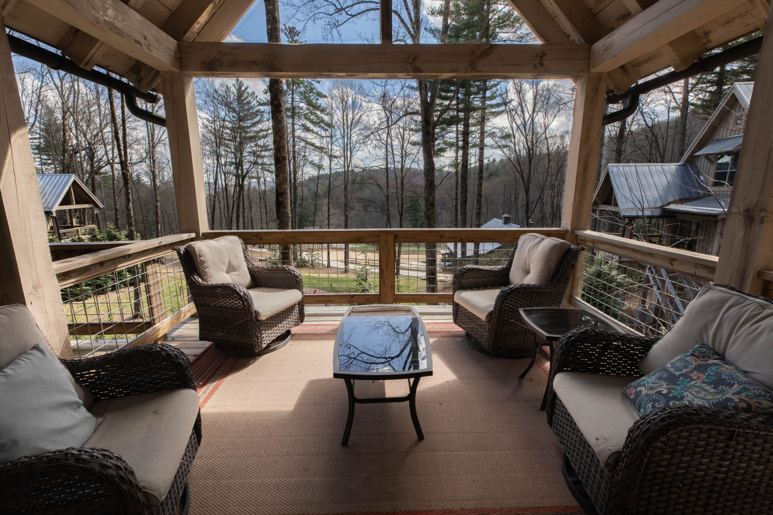 The breezy back porch has a grill, and overlooks the beautiful lawn and mountain vistas. Enjoy your first cup of coffee on the porch listening to the songbirds. There is a fire pit and comfy Adirondack chairs in the common space that is perfect for making smore’s.